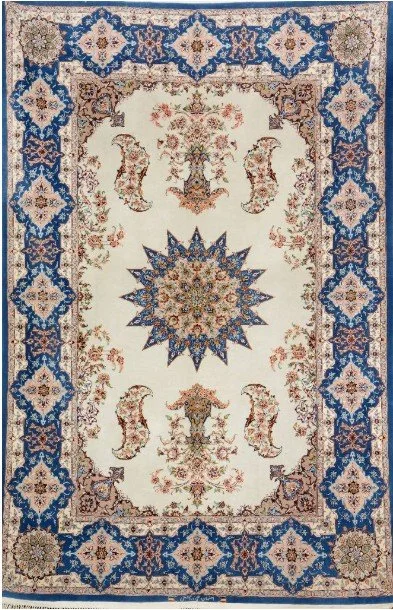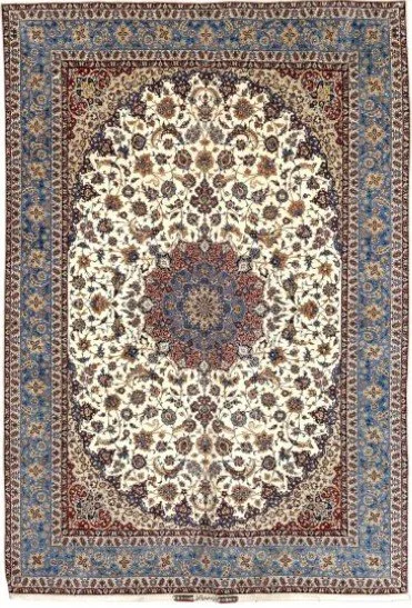 Design: Isfahan Persian rugs are characterized by intricate floral motifs, arabesques, medallions, and curvilinear patterns. These designs are meticulously executed with fine detail and precision, often incorporating rich colors such as deep blues, crimson reds, ivory, gold, and soft greens.