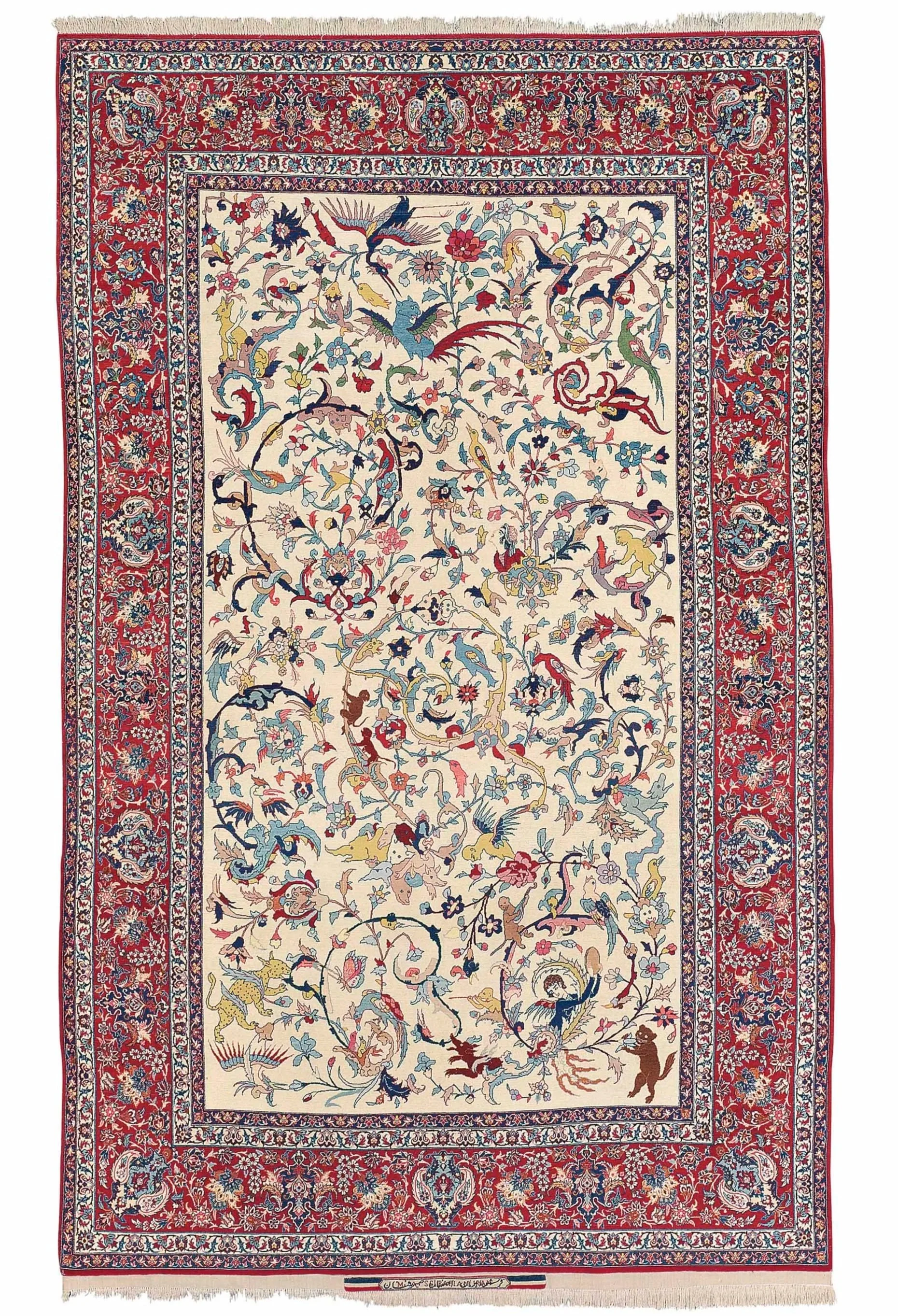 A beautiful 1930’s isfahan carpet attributed to artist mirza agha emami the workshop is probably mehdi haghighi