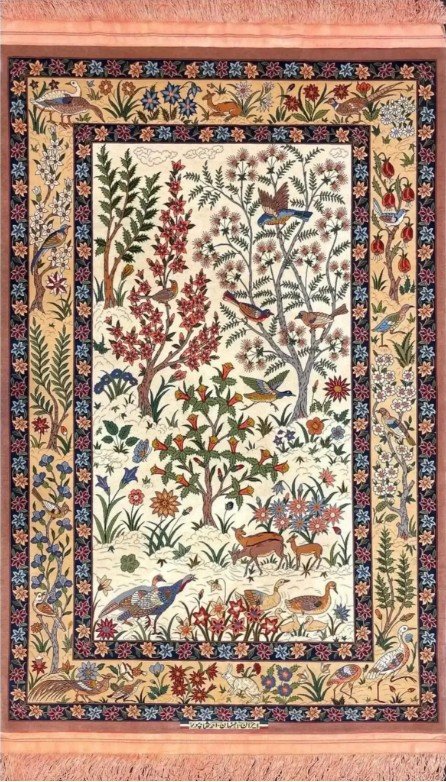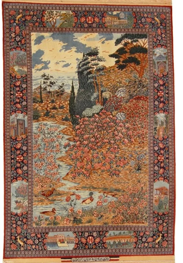 Ahmad Shahapour is a living legend among contemporary Isfahan carpet artists, known for producing exclusive limited editions. His “Shahapoor Paradise” series depicts detailed Persian gardens woven on silk foundations with knot densities exceeding 800 knots per square inch.